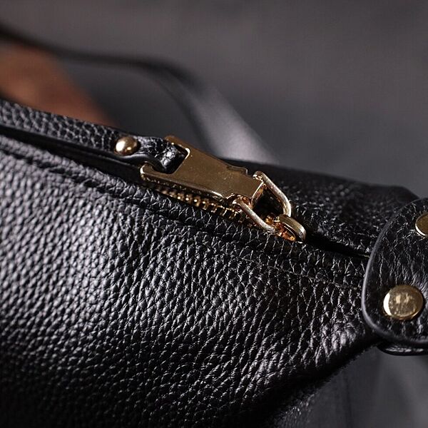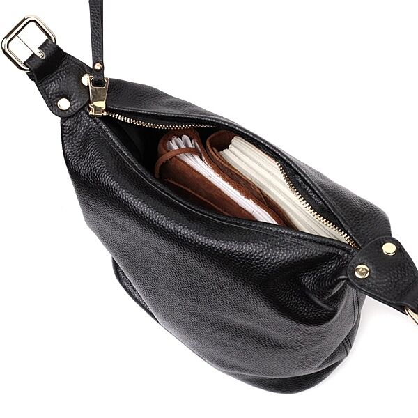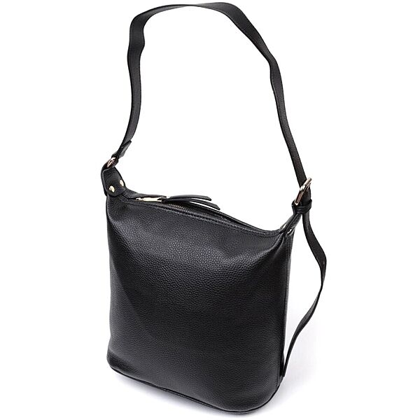 Містка жіноча сумка з однією довгою ручкою з натуральної шкіри722305 Чорна