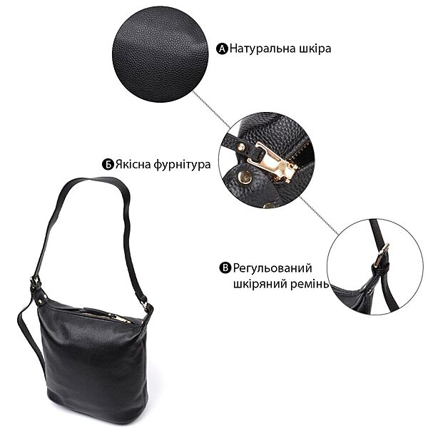 Подробное описание: Містка жіноча сумка з однією довгою ручкою з натуральної шкіри722305 Чорна