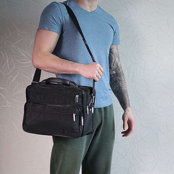Подробное описание: Чоловіча сумка з надійною пластиковою ручкою з поліестера 722587 Чорний