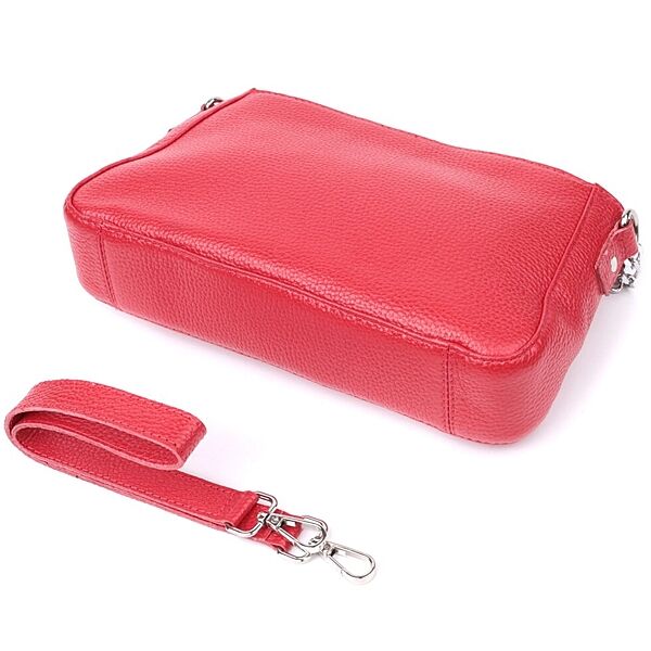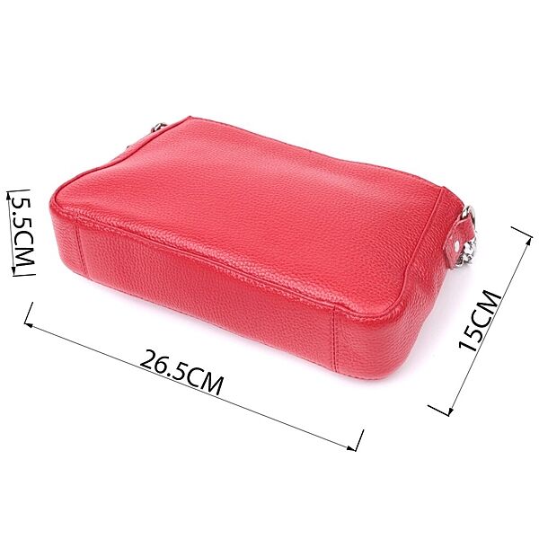 Яскрава сумка багет з ланцюжком і знімним ремінцем з натуральної шкіри 722836 Червона