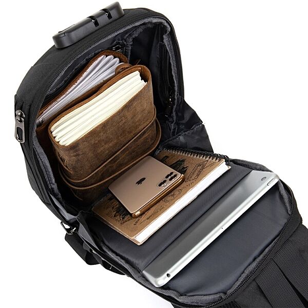 Ергономічний рюкзак через плече з кодовим замком текстильний720553 Чорний