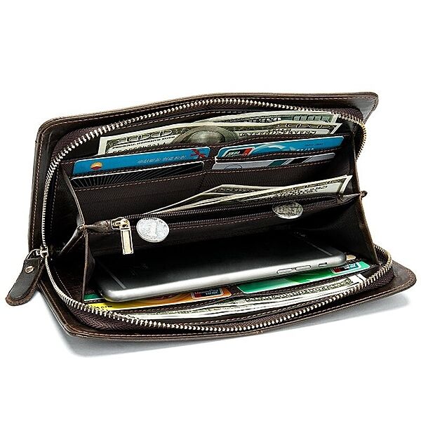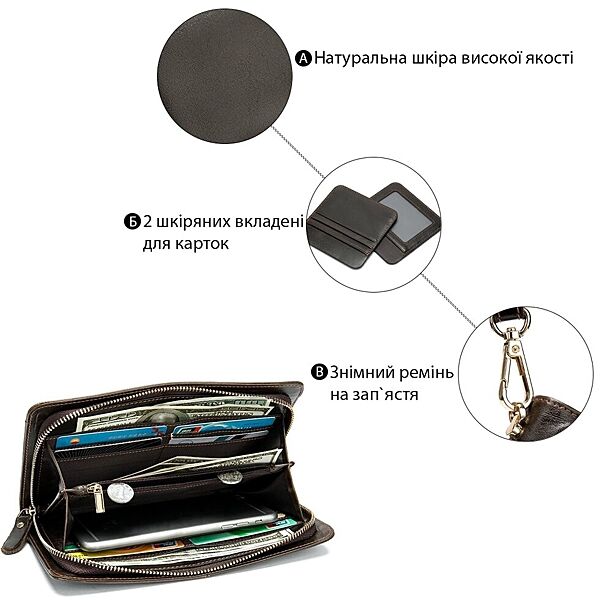 - 2 відділи для купюр і перегородка-монетниця на блискавці;
