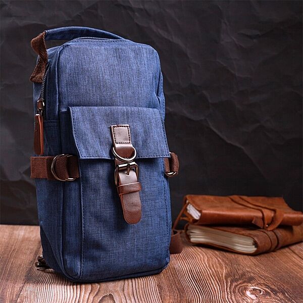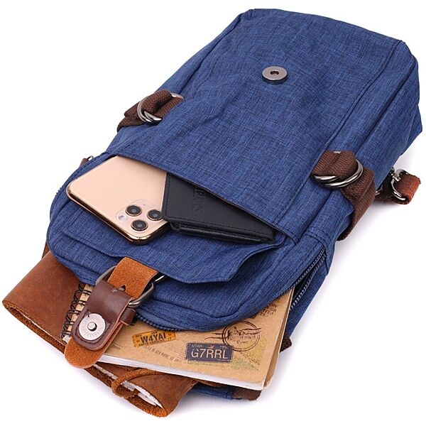 Цікава плечова сумка для чоловіків із щільного текстилю722190 Синій