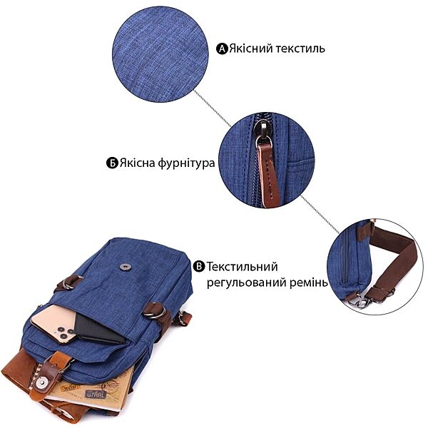 Подробное описание: Цікава плечова сумка для чоловіків із щільного текстилю722190 Синій