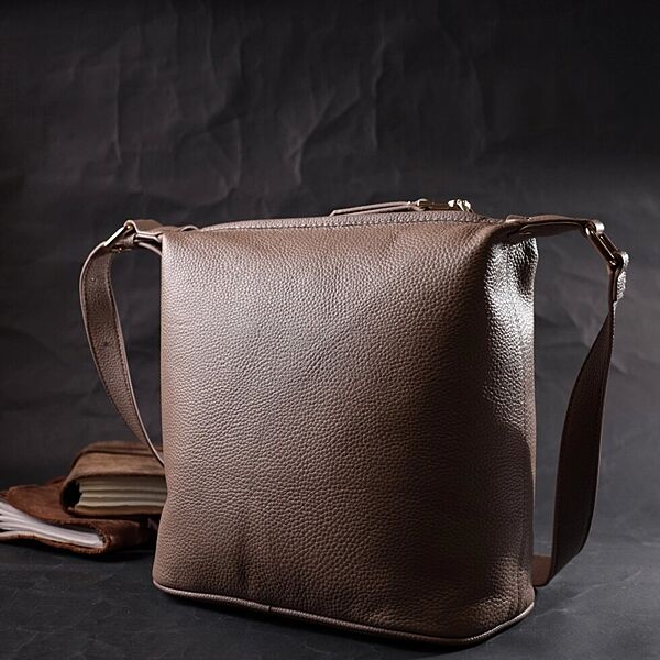 Жіноча стильна вертикальна сумка з твердим дном з натуральної м´якої шкіри, яка дуже добре показала себе в експлуатації. Аксесуар складається з основного відділення, потайної кишені на блискавці та кишені відкритого типу. Носити сумку можна на плечі та через плече, для цього є шкіряний незнімний регульований ремінь. У виробі використано якісну фурнітуру кольору жовтого золота. Чудовий варіант сумки на кожен день. ОПЛАТА та ДОСТАВКА: накладний платіж (передоплата 200 грн, залишок при отриманні посилки) або повна оплата на картку. Терміни відправлення 1-3 робочих днів.