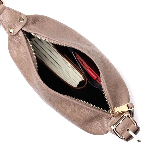 Практична жіноча сумка з однією довгою ручкою з натуральної шкіри722306 Бежева