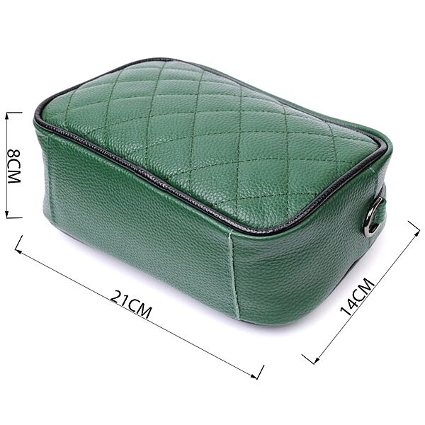 Оригінальна жіноча стьобана ромбами на лицьовій стороні сумка. Виріб пошитий з якісної натуральної шкіри, яка довго носиться і не втрачає свого первісного вигляду. Аксесуар складається з одного основного відділення всередині якого розташована кишеня відкритого типу і кишеня на блискавці, також зовні розташована кишеня на блискавці, на тильній стороні. Носити сумку можна в руці як клатч, на плечі та через плече, для цього є текстильний ремінь, що знімається. У виробі використано якісну фурнітуру кольору темного срібла. Універсальний варіант сумки як на вечір так і як сумочка на кожен день. ОПЛАТА та ДОСТАВКА: накладний платіж (передоплата 200 грн, залишок при отриманні посилки) або повна оплата на картку. Терміни відправлення 1-3 робочих днів.