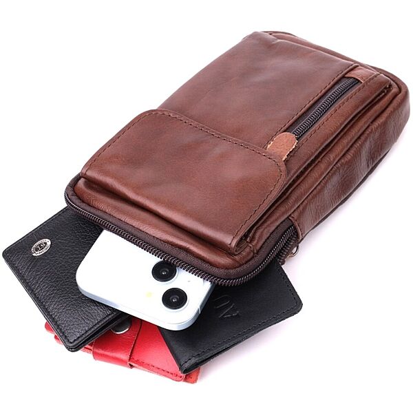 Відмінна чоловіча сумка на пояс із натуральної шкіри722564 Коричневий
