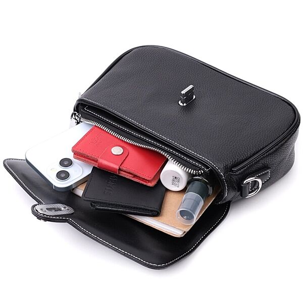 Елегантна сумка жіноча з фактурним клапаном з натуральної шкіри722624 Чорна