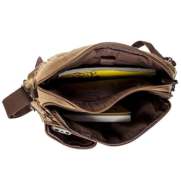 - два основних відділення, одне з ущільненою кишенею на липучці для ноутбука, одне з двома накладними кишеньками;