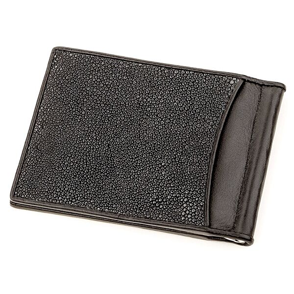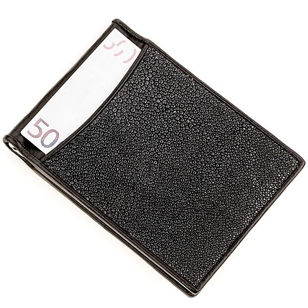 Затискач для грошей 718293 з натуральної шкіри морського ската Чорний