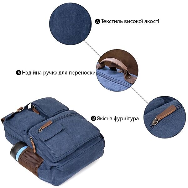 Подробное описание: Рюкзак текстильний дорожній унісекс720621 Синій