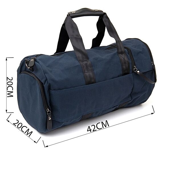 Текстильна дорожня сумка універсального і не мазкого темно-синього кольору. Сумка підійде як для занять спортом, так і в якості дорожньої сумки. Виріб дуже практичний і не важкий. Таким чином помістивши свої речі в сумку вона не стане зовсім непідйомною. Сумка має компактні розміри і стане хорошим варіантом для відрядження. В сумку можна зручно помістити пару кросівок до відповідного відділення. У сумці також є петелька для носіння каремата або килимка (щоб його зафіксувати). Сумка з текстилю - ідеальний бюджетний варіант. ОПЛАТА та ДОСТАВКА: накладний платіж (передоплата 200 грн, залишок при отриманні посилки) або повна оплата на картку. Терміни відправлення 1-3 робочих днів.