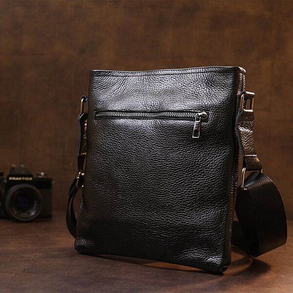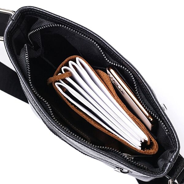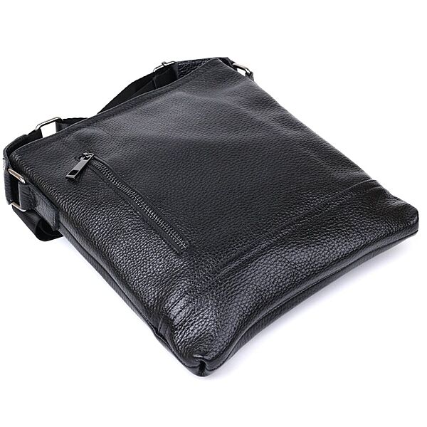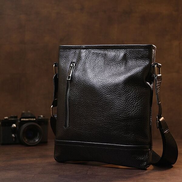 Стильна сумка для чоловіків в універсальному чорному кольорі із зернистою фактурою. Матеріал виготовлення – натуральна шкіра високої якості та високою стійкістю до зношування. Має містке відділення на блискавці та дві зовнішні кишені. Така сумка прикрасить гардероб будь-якого чоловіка. ОПЛАТА та ДОСТАВКА: накладний платіж (передоплата 200 грн, залишок при отриманні посилки) або повна оплата на картку. Терміни відправлення 1-3 робочих днів.