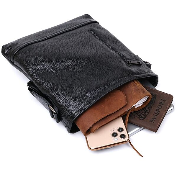 Подробное описание: Шкіряна стильна чоловіча сумка через плече 711604 Чорний