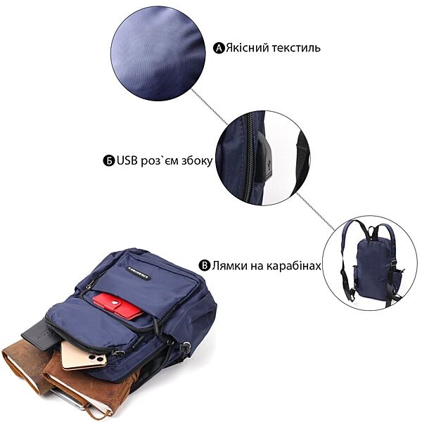 Подробное описание: Багатофункціональний чоловічий текстильний рюкзак720575 Синій