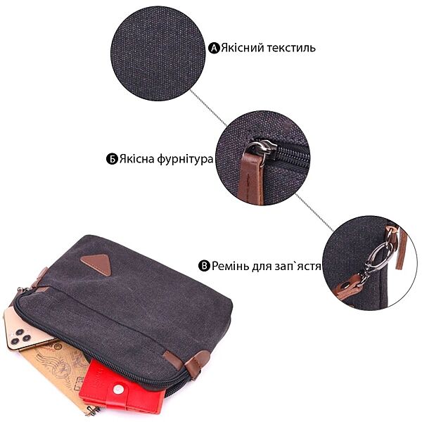 Подробное описание: Зручна чоловіча барсетка текстильна 721258 Чорна