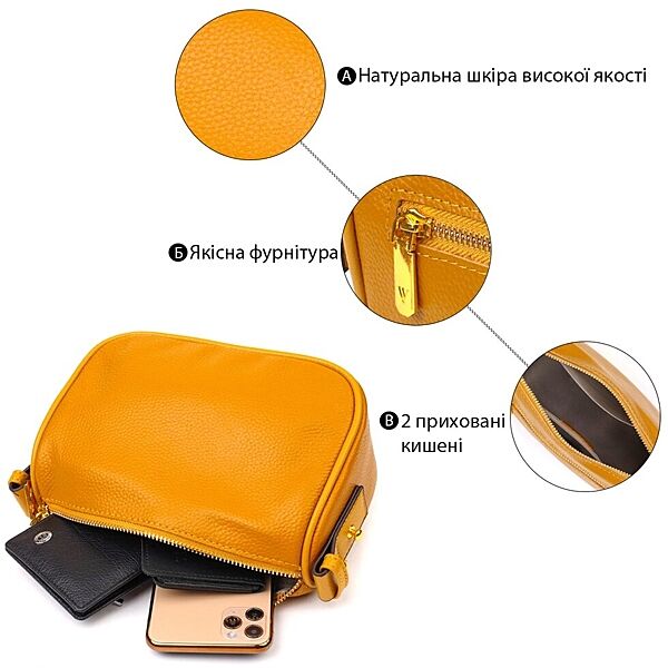 Подробное описание: Красива сумка на плече крос-боді з натуральної шкіри 722100 Жовта