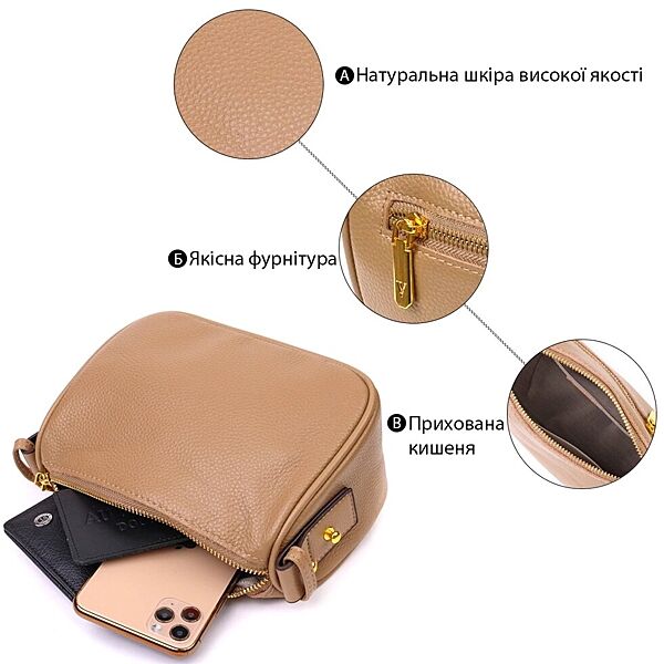 Подробное описание: Сумка на плече крос-боді з натуральної шкіри 722128 Бежева