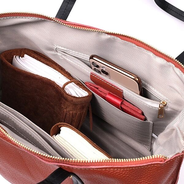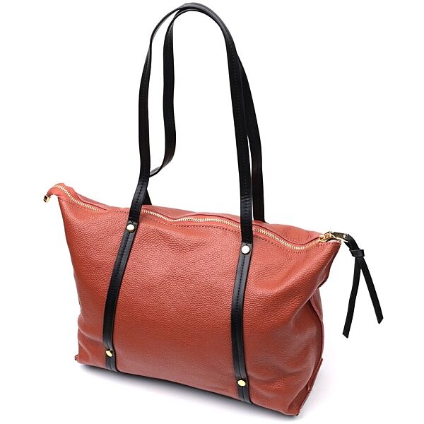 Містка двокольорова сумка жіноча з натуральної шкіри722301 Коричнева