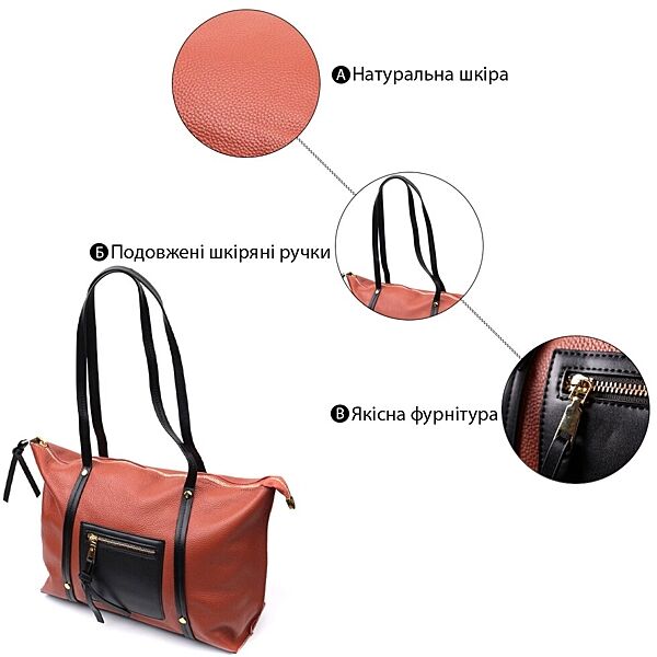 Подробное описание: Містка двокольорова сумка жіноча з натуральної шкіри722301 Коричнева