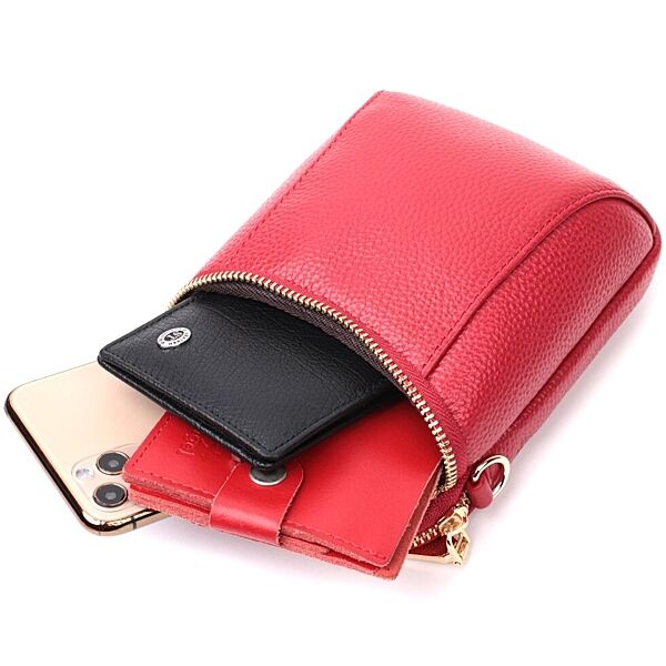 Яскрава сумка цікавого формату з натуральної шкіри722340 Червона