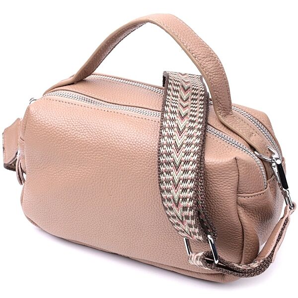 Прямокутна сумка для жінок на два відділення з натуральної шкіри722345 Бежева