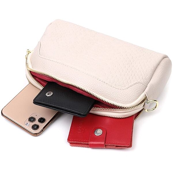 Невелика прямокутна сумка на два відділення з натуральної шкіри722357 Біла