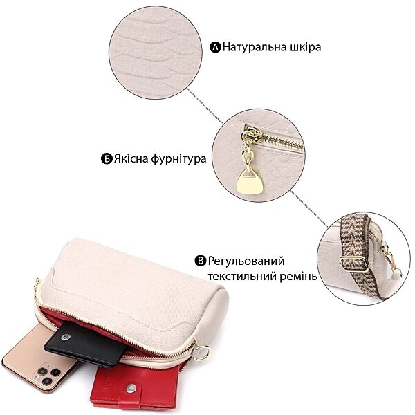 Подробное описание: Невелика прямокутна сумка на два відділення з натуральної шкіри722357 Біла