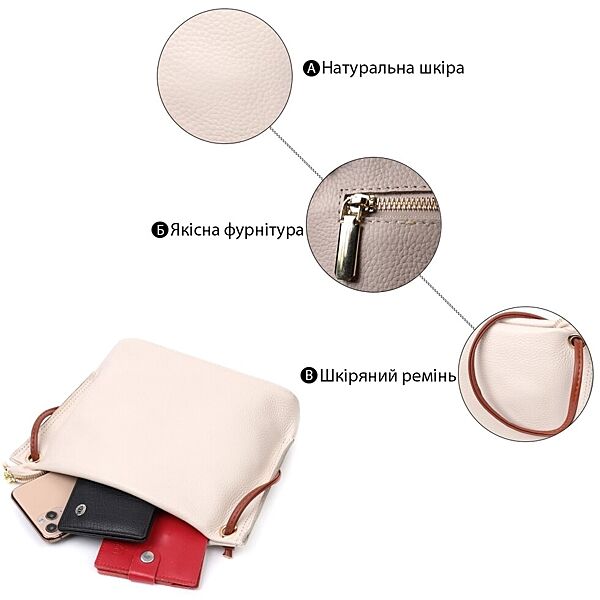 Подробное описание: Жіноча трапецієподібна сумка на плече з натуральної шкіри722396 Біла