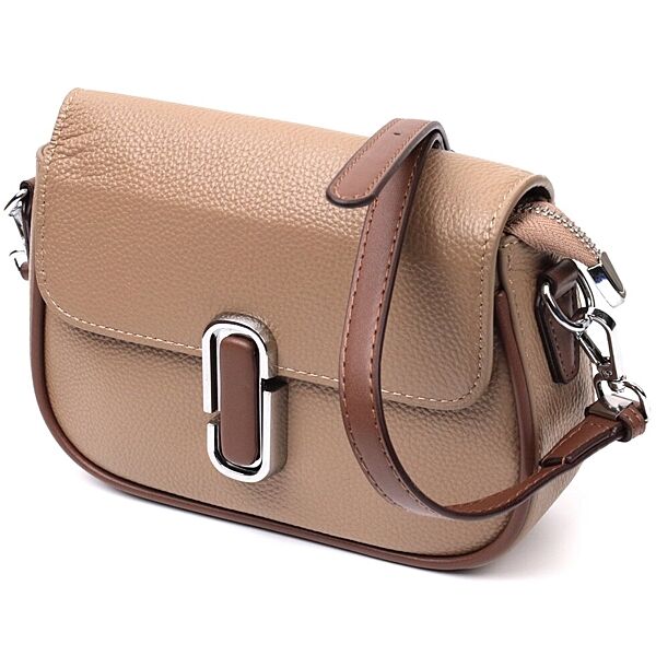 Жіноча напівкругла сумка з цікавим магнітом-засувкою з натуральної шкіри722440 Бежева