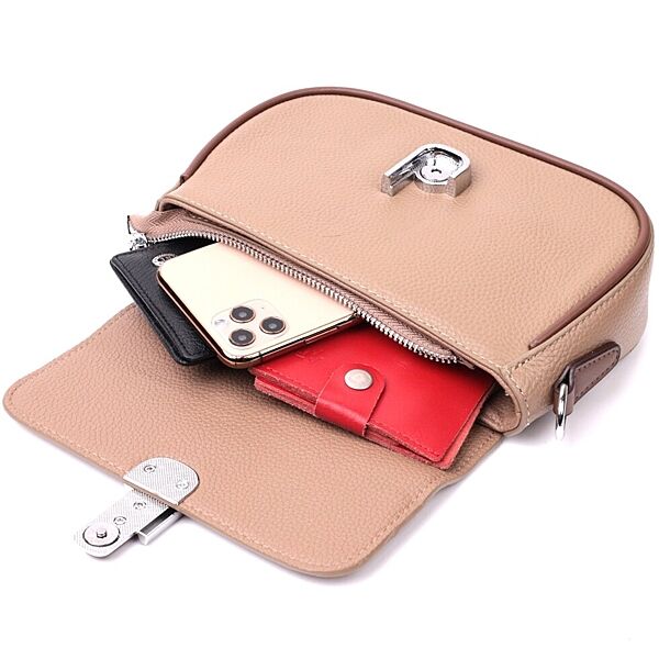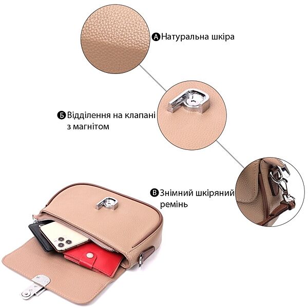Подробное описание: Жіноча напівкругла сумка з цікавим магнітом-засувкою з натуральної шкіри722440 Бежева