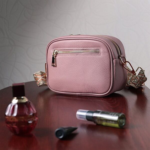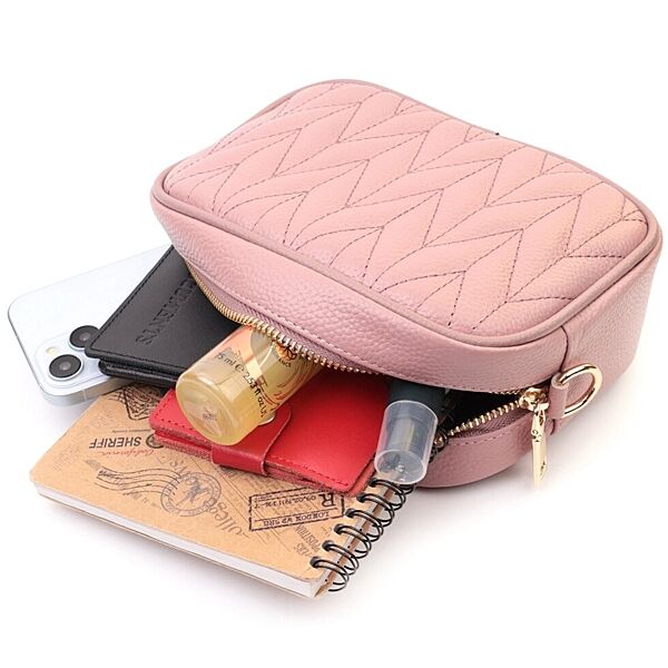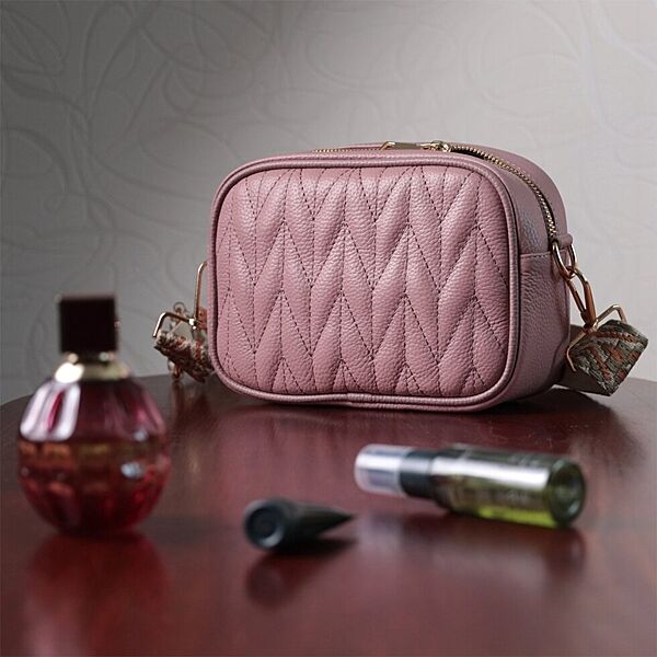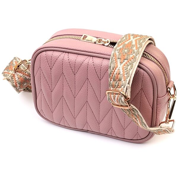 Красива стьобана жіноча сумка з натуральної шкіри722614 Рожева