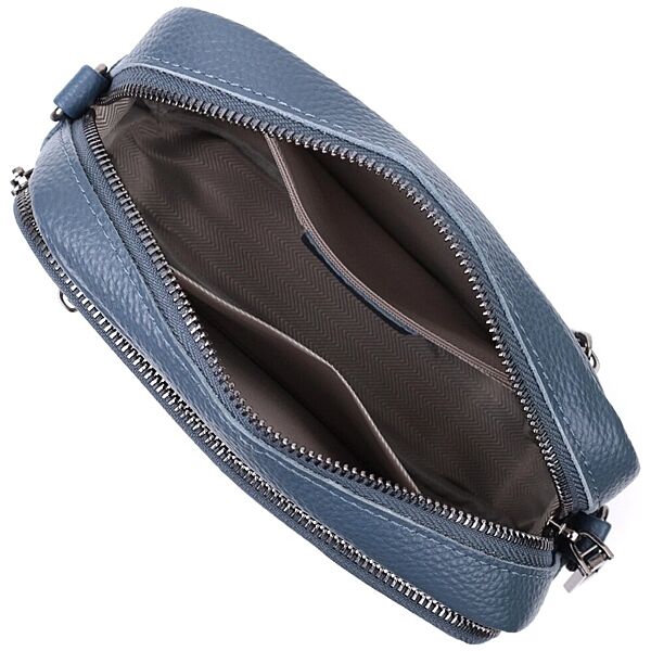 Невелика, але містка сумка для жінок з натуральної шкіри. Аксесуар складається з основного відділення, що закривається на блискавку, кишені відкритого типу та кишені на блискавці всередині та трьох кишень зовні. Носити сумку можна на плечі та через плече, також можна носити як клатч під рукою, для цього можна зняти текстильний ремінець. ОПЛАТА та ДОСТАВКА: накладний платіж (передоплата 200 грн, залишок при отриманні посилки) або повна оплата на картку. Терміни відправлення 1-3 робочих днів.