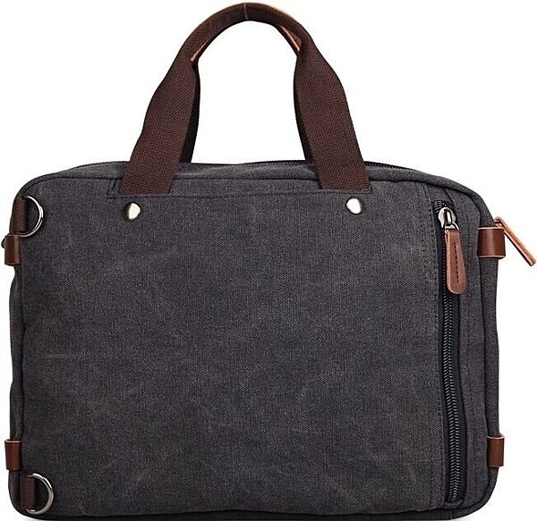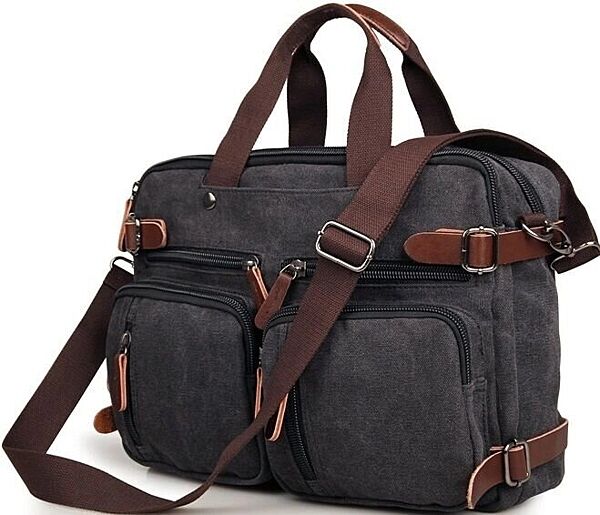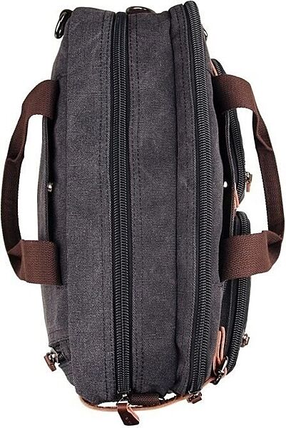 Містка чоловіча сумка-трансформер з міцної тканини. Виріб складається з двох великих відділень, які закриваються на надійні товсті блискавки. У першому відділенні знаходиться відділення з м´якою перегородкою для 15-дюймового ноутбука, а також потайна кишенька на змійці. У другому відділенні дві невеликі кишені під гаманець і телефон.