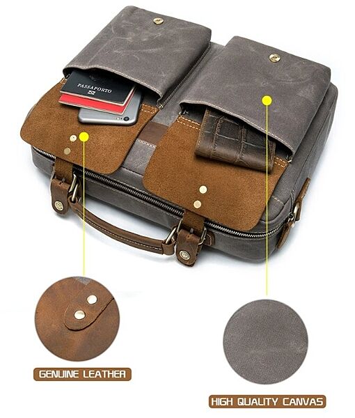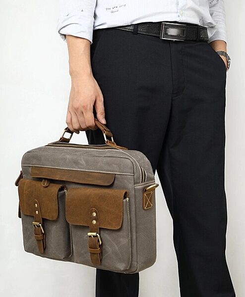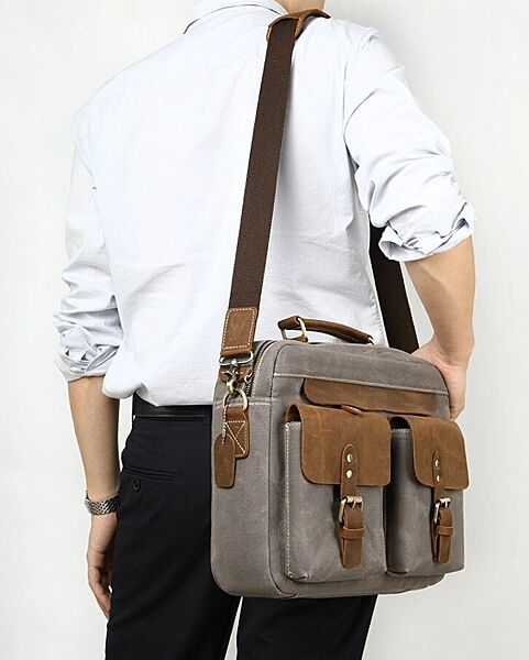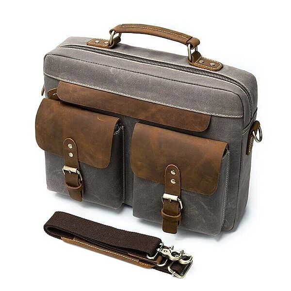 Подробное описание: Сумка-портфель чоловіча текстильна з шкіряними вставками720001 Сіра