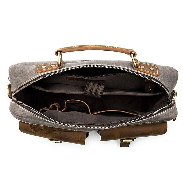 Сумка-портфель чоловіча текстильна з шкіряними вставками Vintage 20001 CераяСірий колір;