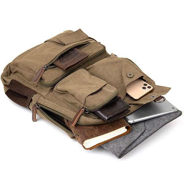 Комфортний і місткий рюкзак для ноутбука і в подорож. Виріб має дуже продуманий розмір і практичний функціонал. Рюкзак має безліч кишеньок різного типу. Всередині - якісна текстильна підкладка коричневого кольору. З таким рюкзаком зручно відправитися в дорогу так як він не важкий за рахунок того що виконаний з текстилю. Доповнено рюкзак якісною фурнітурою. Оливковий колір рюкзака дуже універсальний і не мазкий. Рюкзак прослужить вам далеко не один рік. Рекомендуємо вам дану модель до покупки для ваших комфортних подорожей. ОПЛАТА та ДОСТАВКА: накладний платіж (передоплата 200 грн, залишок при отриманні посилки) або повна оплата на картку. Терміни відправлення 1-3 робочих днів.