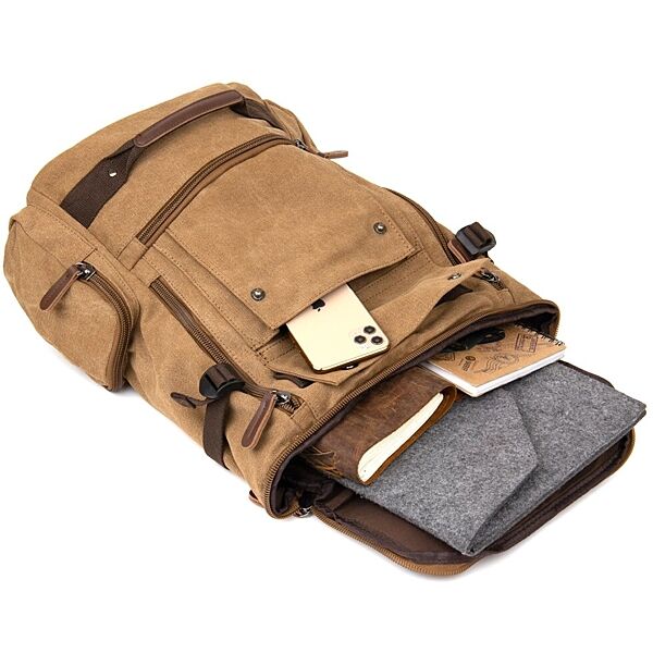Великий рюкзак на одне відділення текстильний пісочного кольору. Рюкзак дуже місткий. На лицьовій стороні рюкзак має кілька ручок для носіння в руках зі шкірозамінника. Виріб має дуже практичний функціонал. Рюкзак підійде для подорожей і відряджень. Усередині рюкзака є ущільнена кишеня для ноутбука. Незважаючи на свій великий розмір рюкзак не важкий. Закривається рюкзак на блискавку. Всередині - якісна підкладка. Виробництво - фабричний Китай. Текстильний рюкзак - бюджетне рішення для вашого комфорту. ОПЛАТА та ДОСТАВКА: накладний платіж (передоплата 200 грн, залишок при отриманні посилки) або повна оплата на картку. Терміни відправлення 1-3 робочих днів.