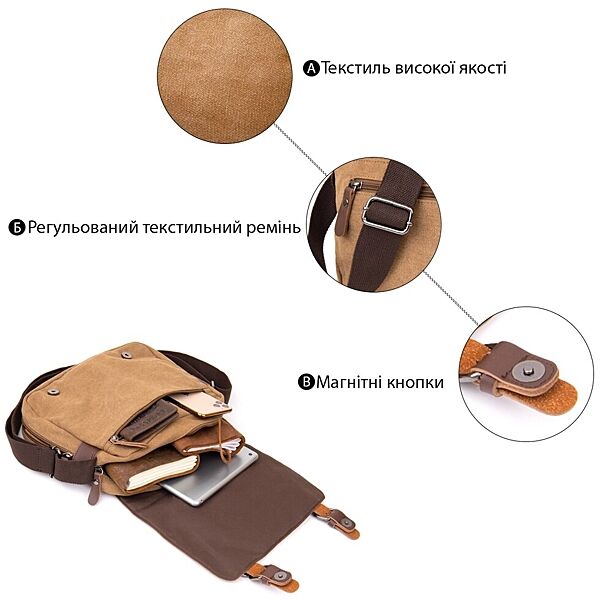 Подробное описание: Сумка почтальонка текстильна720607 Пісочна