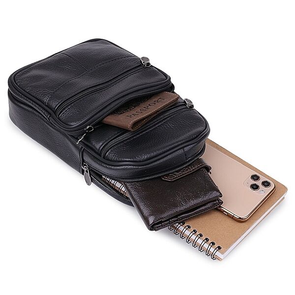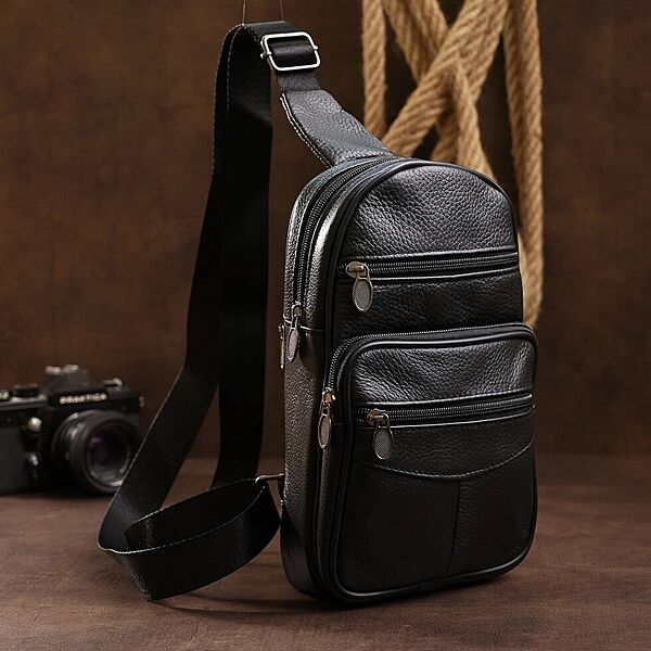 Подробное описание: Компактна шкіряна чоловіча сумка через плече720000 Чорний