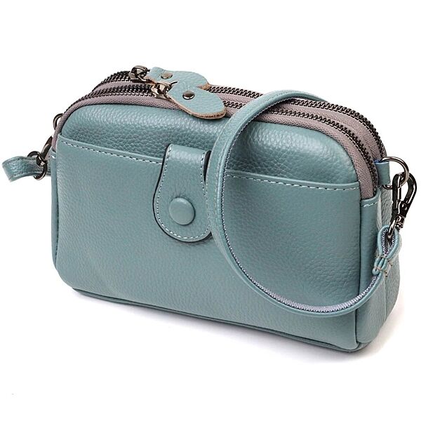 Модна сумка-клатч у стильному дизайні з натуральної шкіри 220877Сіро-блакитна