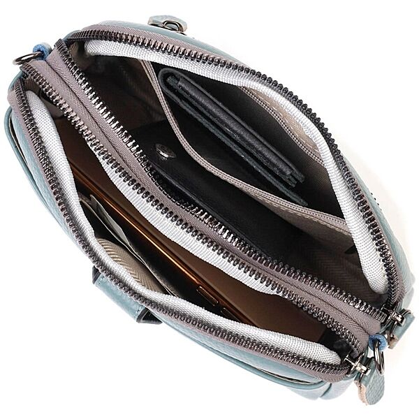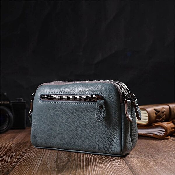 Подробное описание: Модна сумка-клатч у стильному дизайні з натуральної шкіри 220877Сіро-блакитна