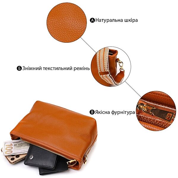 Подробное описание: Красива невелика сумка на плече з натуральної шкіри 221397Руда