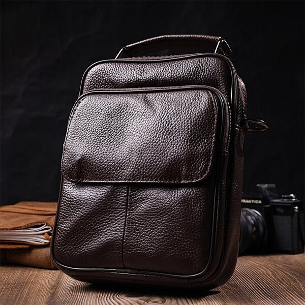 Стильний чоловічий месенджер з натуральної шкіри721949 Коричневий