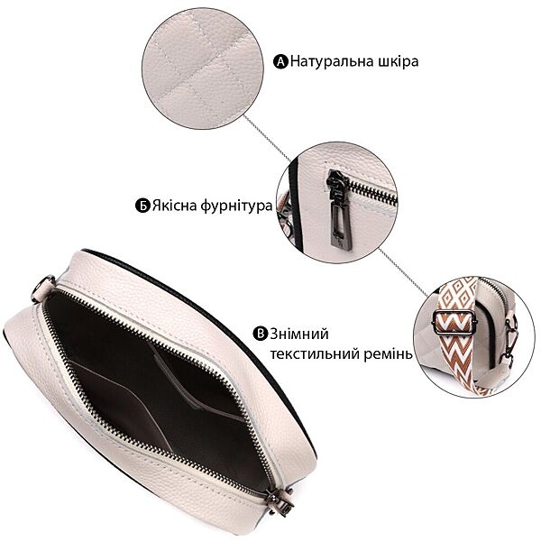 Подробное описание: Жіноча сумка через плече на одне відділення з натуральної шкіри722383 Біла