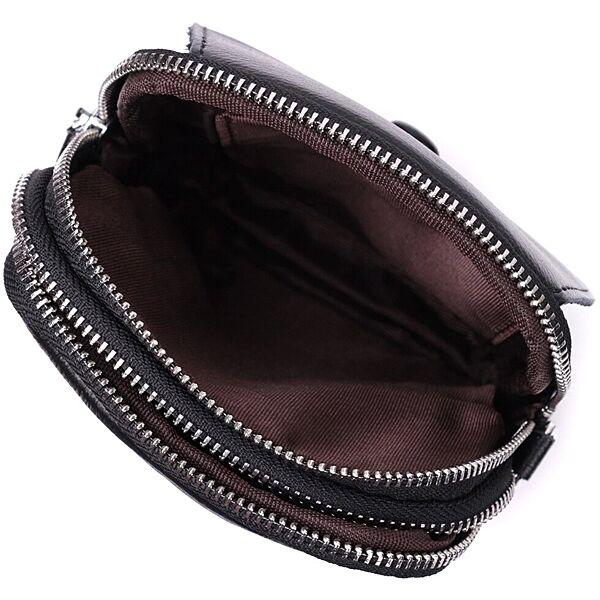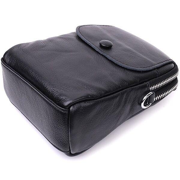 Вертикальна невелика сумка для жінок на два відділення з натуральної шкіри722399 Чорна