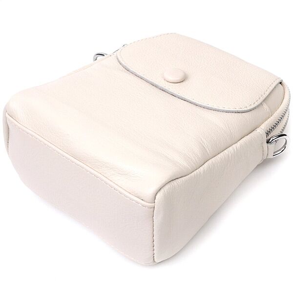 Жіноча невелика вертикальна сумка на два відділення з натуральної шкіри722401 Біла