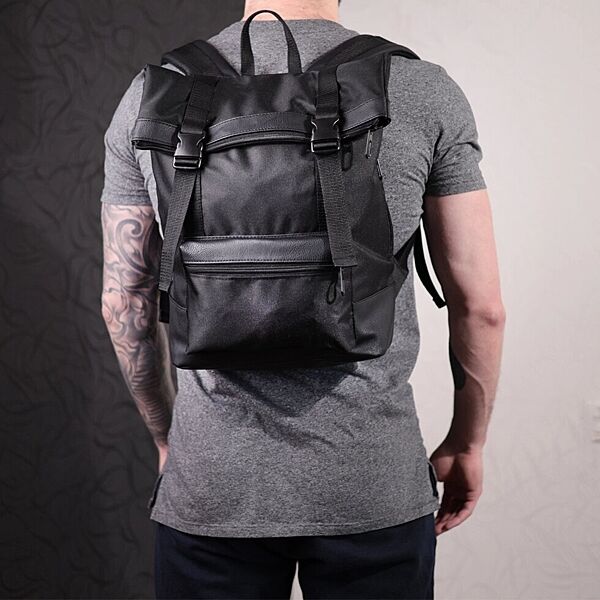 Трендовий рюкзак для ноутбука, з конструкцією Rolltop чорного кольору, що дозволяє збільшити місткість виробу. Висота виробу у складеному вигляді 40 сантиметрів, у розкладеному – 53 сантиметри. Аксесуар виготовлений з якісного матеріалу - поліестеру, знаменитого своєю міцністю та зносостійкістю. Також у рюкзаку присутні акценти з еко-шкіри, які надають виробу більш стильного вигляду. На лицьовій стороні, у правому нижньому кутку, розташований вишитий логотип бренду, що є запорукою якості. Усередині знаходяться два відділення: одне з них для ноутбука діагоналлю до 15,6 дюймів з ущільненою стінкою. Зовні: накладна горизонтальна кишеня на блискавці на лицьовій стороні та вертикальна бічна кишеня на блискавці. Носити рюкзак можна в руці, для цього призначена текстильна ручка, а також на спині, для цього є ущільнені лямки та ущільнена спинка для більшої зручності. Фурнітура яка використовується в аксесуарі, якісна, прослужить не один рік, рядки рівні, акуратні краї, підкладка міцна. Відмінний рюкзак як на кожен день, так і в подорожі, яка прослужить Вам не один рік і радуватиме око своїм первісним виглядом. ОПЛАТА та ДОСТАВКА: накладний платіж (передоплата 200 грн, залишок при отриманні посилки) або повна оплата на картку. Терміни відправлення 1-3 робочих днів.