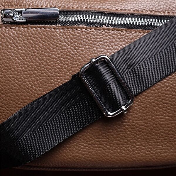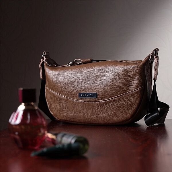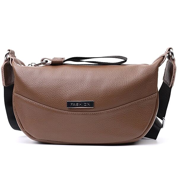Жіноча сумка з натуральної шкіри через плече з незвичайним бігунком брелок722619 Коричнева